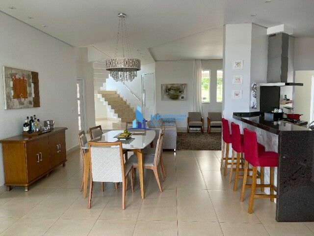 Residência, sobrado com piscina aquecida, em terreno de esquina com 420m² e área construída de 290m², 3 suítes amplas (2 closets), sala 2 ambientes com pé direito alto, sala de TV, escritório reversível, lavabo, cozinha planejada, lavanderia e despejo, 6 vagas de garagem, pergolado, gramado e paisagismo, varanda gourmet com churrasqueira e cooktop, mezanino e sacada com linda vista do por sol e da cidade.
